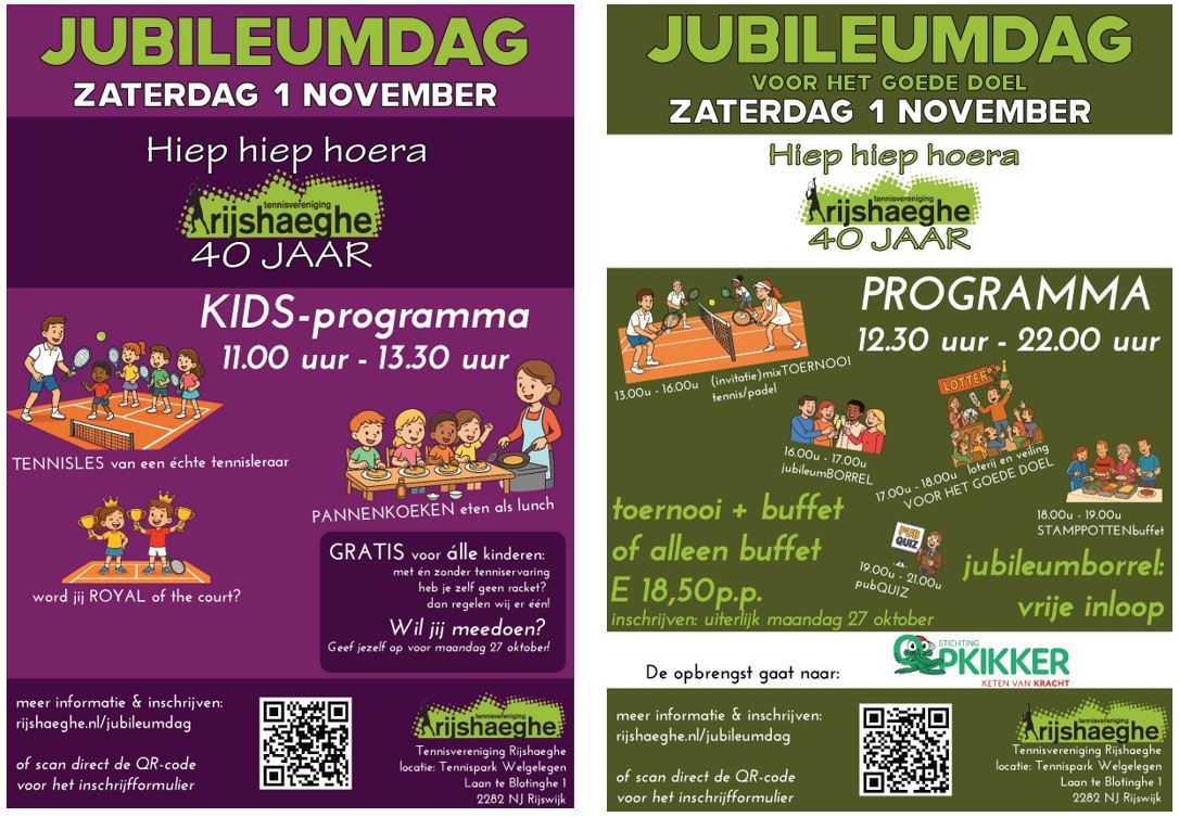 Zaterdag 1 november bestaat tennisvereniging Rijshaeghe 40 jaar!